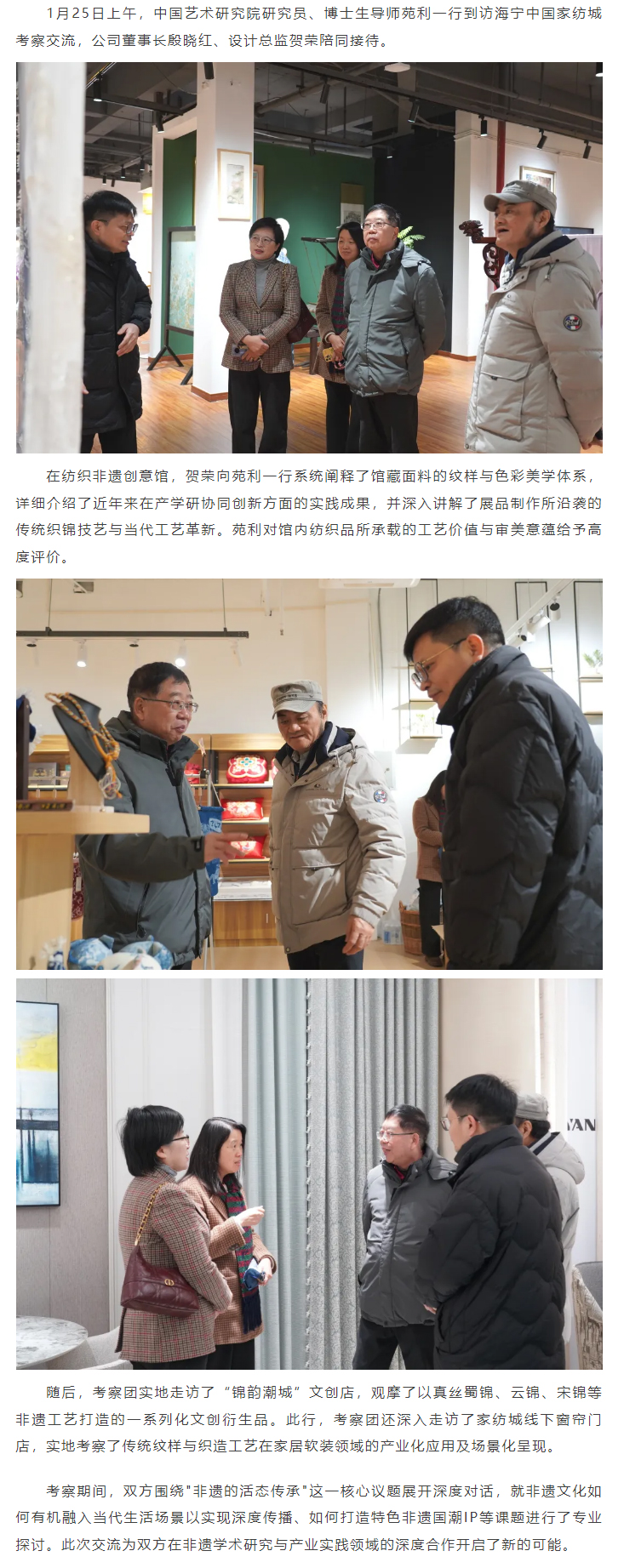 中国艺术研究院研究员、博士生导师苑利一行来访海宁中国家纺城参观调研